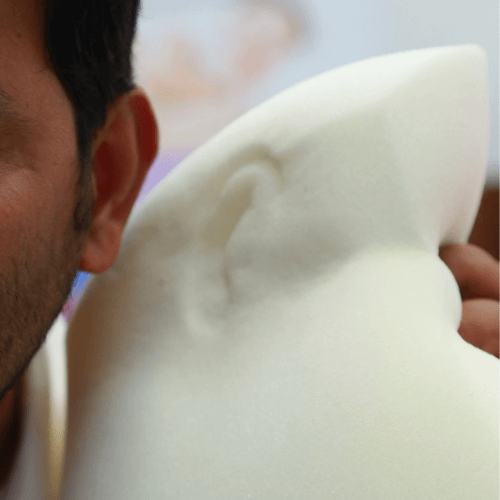 Memory foam holds the head and neck supportively and maintains their shape.